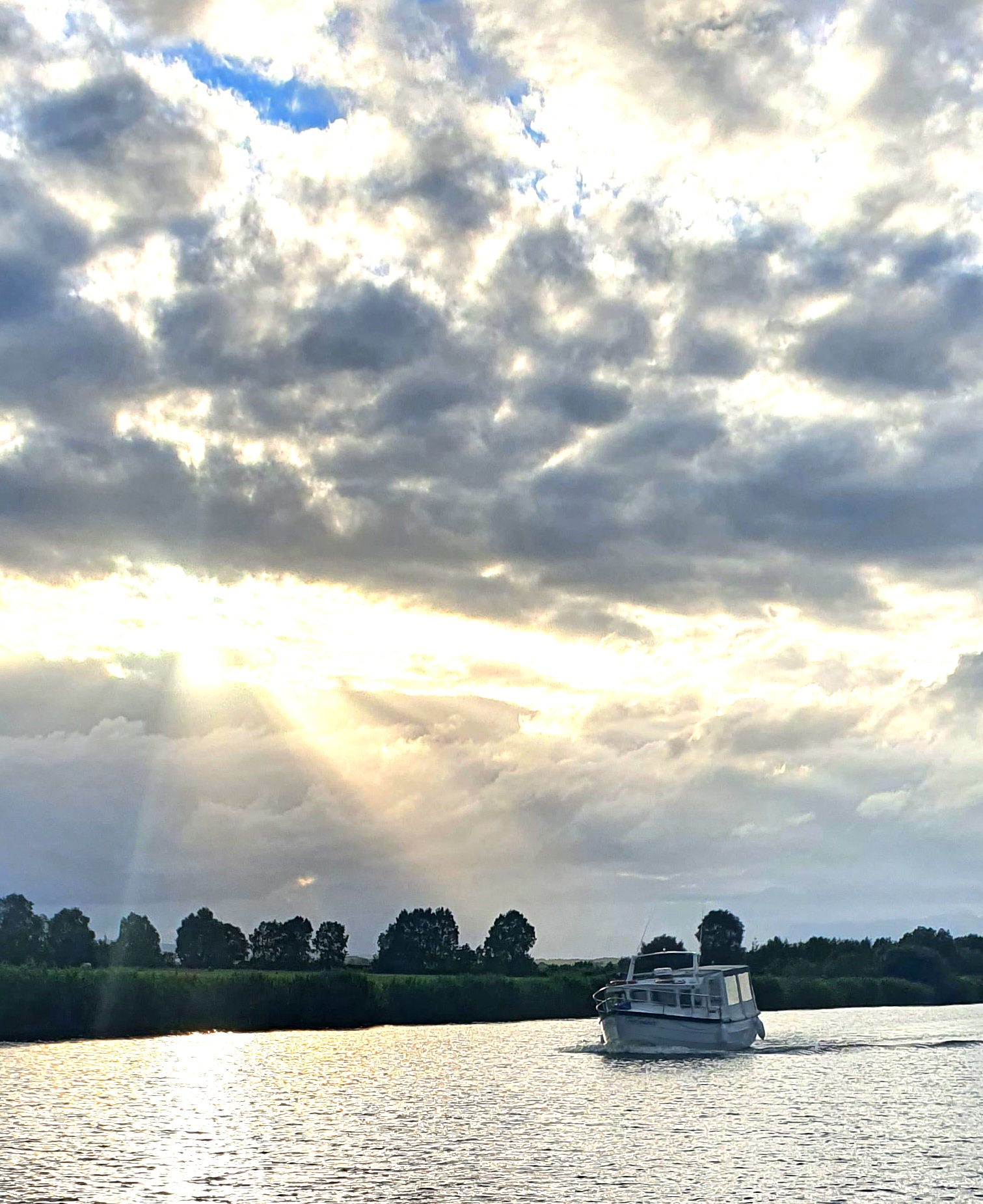 Our sunset sailing cruise along the Lower River Bann to Lough Beg passing Church Island with a welcome drink and some snacks.